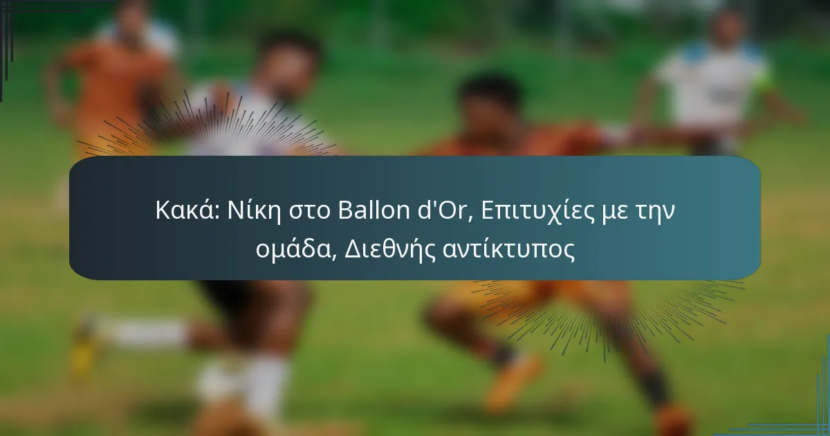 Η καριέρα του Κακά στο ποδόσφαιρο χαρακτηρίζεται από σημαντικές επιτυχίες, συμπεριλαμβανομένης της κατάκτησης του prestigieux Ballon d’Or, πολλών τίτλων συλλόγων και εντυπωσιακών εμφανίσεων στη διεθνή σκηνή. Η κληρονομιά του συνεχίζει να επηρεάζει τους επίδοξους ποδοσφαιριστές σε όλο τον κόσμο.