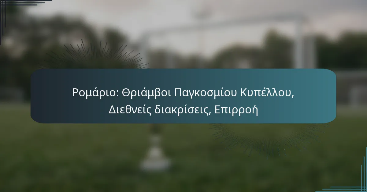 Ο Ρομάριο, ένας θρυλικός Βραζιλιάνος ποδοσφαιριστής, έχει λάβει πολλές διεθνείς διακρίσεις καθ’ όλη τη διάρκεια της καριέρας του, συμπεριλαμβανομένων τίτλων Παγκοσμίου Κυπέλλου FIFA, ατομικών βραβείων και αναγνωρίσεων που εδραίωσαν τη θέση του στην ιστορία του ποδοσφαίρου. Οι επιτυχίες του όχι μόνο αναδεικνύουν το εξαιρετικό του ταλέντο αλλά και τη σημαντική του επιρροή στο βραζιλιάνικο ποδόσφαιρο και στη διεθνή σκηνή.